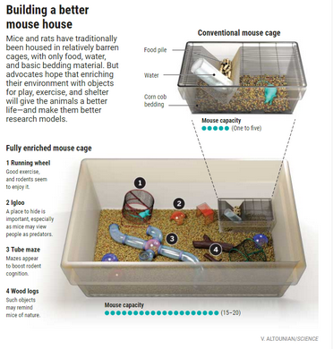 我們的科學家要做很多實驗,實驗過程常常需要一些小動物協助,這些動物我們稱為實驗室動物。然而,小老鼠等實驗動物一直生活在很不友善的環境裡:一個小小的塑膠盒,也很少有其他的動物朋友。這是因為科學家認為環境越單純,實驗的準確性就越高。但是越來越多的研究表明,事情好像不一定是這樣哦。 現代的實驗室老鼠住的地方通常就像鞋盒那麼大,比自然的環境小了數十萬倍;老鼠不是自己去找食物,甚至也沒辦法站起來。而且實驗室整天開著燈,讓老鼠的日夜都顛倒了。所以實驗的動物往往都過胖,身體也比較差。這種狀態如果發生在實驗進行之前,你猜猜,它對實驗的影響會怎麼樣? 科學家加納(Joseph Garner)說:「我們對這些動物的控制太多了,反而使得實驗結果不再有用。」 因此,有科學家倡導給實驗動物們豐富的環境,讓牠們跟同伴一起相處、有遊戲和探索的機會等。除了實驗動物謀福利,也希望這樣可以對研究更有意義。於是科學家開始進行實驗,想要證明這種豐富的生活環境同時有益於動物跟科學。有位研究腫瘤的科學家給小老鼠很棒生活環境,然後發現小老鼠的腫瘤比一般小老鼠小了80%。因此科學家認為,好的環境會對動物有好處,而且結果更接近我們在人類身上發現的。 科學家加納說:「如果我們想透過動物說明將會發生在人類身上的事情,那我們就需要像對待人類一樣對待動物。」儘管不是每個科學家都同意加納的看法,但為實驗動物營造友善環境已成為現代研究的一項趨勢。 請點選「實驗室動物的福利帶動科學的進展?」繼續閱讀。