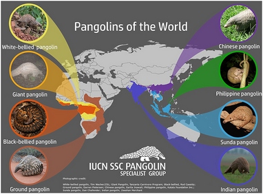 世界上的八種穿山甲物種及其分佈(由IUCN SSC穿山甲專家小組提供)資料來源Pangolins in Trouble · Frontiers for Young Minds