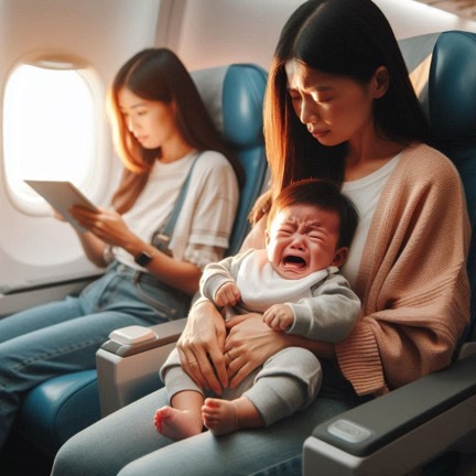 有人把嬰兒在飛機上哭鬧的情景拍攝起來並上傳網絡,掀起了社會上熱烈的討論。究竟嬰兒在飛機上哭鬧,是嬰兒父母的公德心不足,還是社會對育兒的辛勞不夠包容?