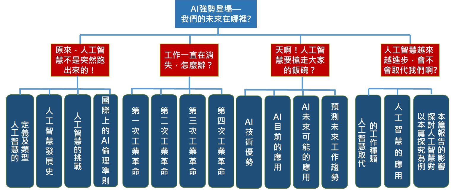 經由回顧過去歷史,我們發現人類已經經歷數次工業革命,每一次工作內容都大幅改變,有許多舊工作消失,但也有很多新工作產生, 人類從來都不會因為創新帶來的改變而停滯不前、自暴自棄,反而會勇敢迎接新的挑戰。