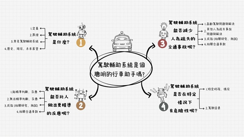 科技日新月異,現今車輛大多配備「駕駛輔助系統」。為了探討這項技術是否可靠,能否取代人類駕駛,我們進行探究。結果發現:「駕駛輔助系統」透過感測器偵測車況與駕駛行為,可降低車禍發生率,然而,當受外界干擾時,系統仍有其限制與風險,無法完全取代人類判斷。因此,唯有駕駛人善用「駕駛輔助系統」,才能真正提升整體行車安全。