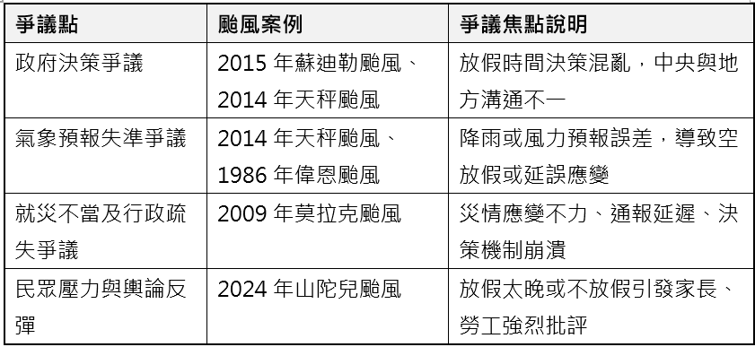 (二)爭議案例:回顧颱風假引發民怨的經典事件